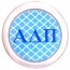 This fabulous ADPi coaster from Marye Kelley features a light blue trellis pattern with bright blue letters decoupaged under heavy glass. The 5" diameter circular coaster is the perfect size to stash your favorite cold drink without ruining your furniture with rings. These gorgeous coasters also make great dishes for change, keys and more. Perfect for any and every Alpha Delta Pi sorority woman!