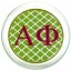 This fabulous Alpha Phi coaster from Marye Kelley features a green trellis pattern with dark pink letters decoupaged under heavy glass. The 5" diameter circular coaster is the perfect size to stash your favorite cold drink without ruining your furniture with rings. These gorgeous coasters also make great dishes for change, keys and more. Perfect for any and every Alpha Phi sorority woman!