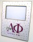 This fabulous Kappa Alpha Theta picture frame from Marye Kelley features a decoupage white and green polka dot pattern with the deep red Alpha Phi logo at the bottom of the frame. The 8" x 10" frame holds your favorite 4" x 6" picture and can be hung from the wall or propped up on a flat surface. Perfect for any and every Alpha Phi sorority woman!