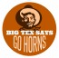 Big Tex supports the horns with this sticker. Great for wearing to the State Fair. A great sticker to wear at the Red River Showdown game