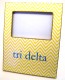 This fabulous Delta Delta Delta picture frame from Marye Kelley features a decoupage yellow chevron pattern with blue text that reads "tri delta". The 8" x 10" frame holds your favorite 4" x 6" picture and can be hung from the wall or propped up on a flat surface. Perfect for any and every Delta Delta Delta sorority woman!
